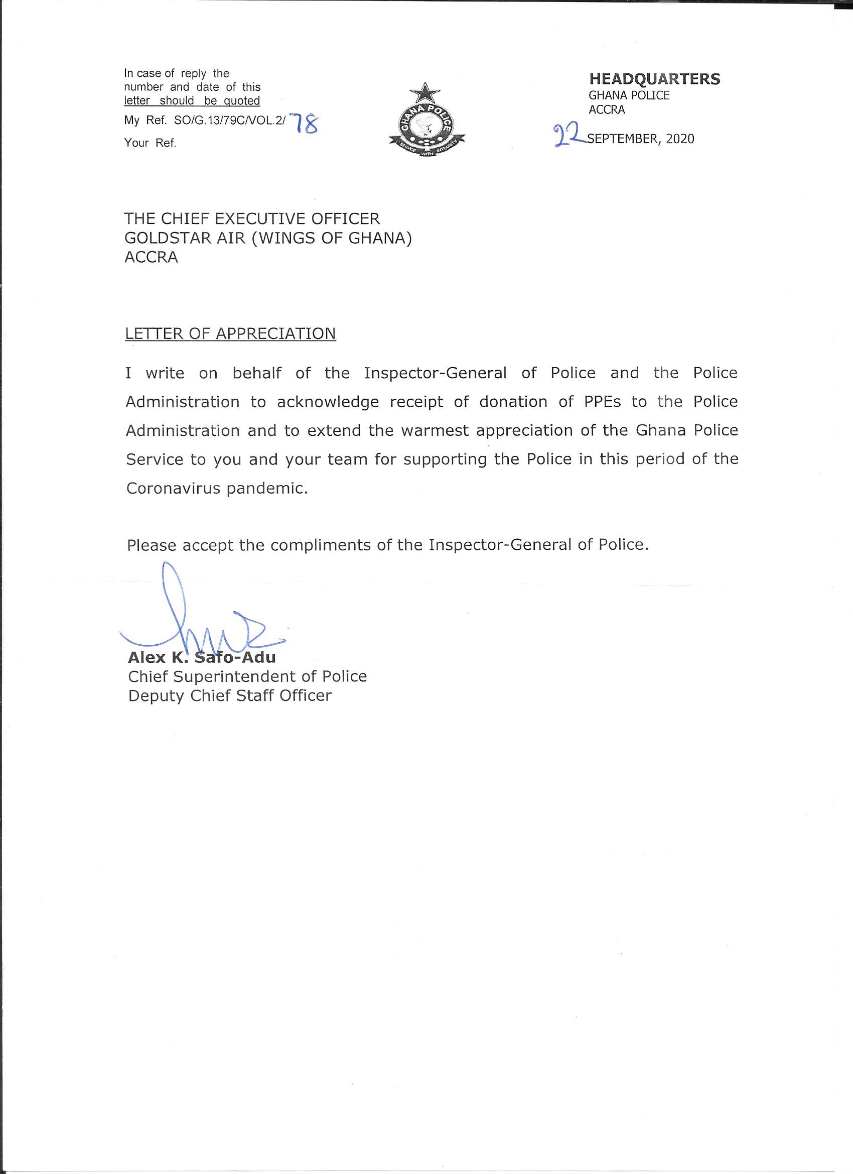 Goldstar Air donates PPE's to Ghana Police Service